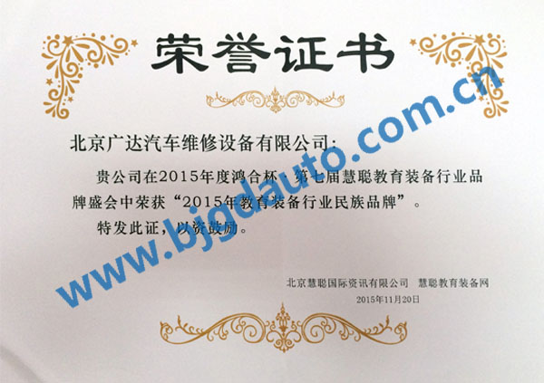 2015民族品牌證書